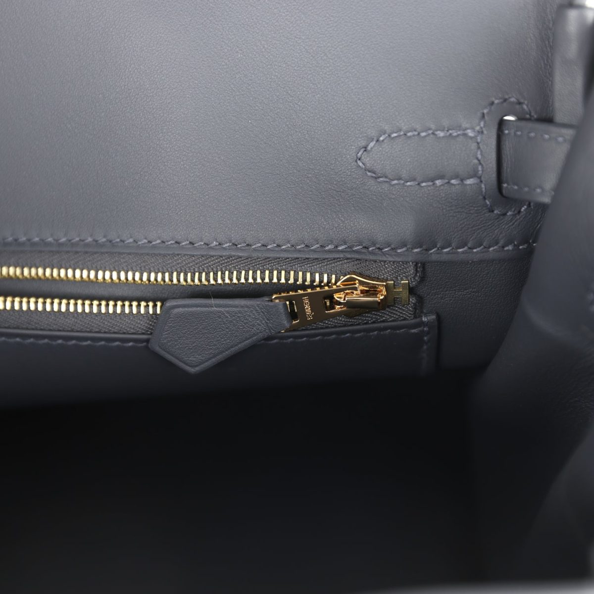 The interior is lined with Ardoise swift and has a zip pocket with an Hermès engraved zipper pull and an open pocket on the opposite side.