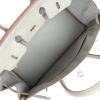 The interior is lined with Gris Perle chevre leather and has one zip pocket with an Hermès engraved zipper pull and an open pocket on the opposite side.