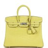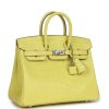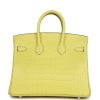 This Birkin is in Lime Mississippiensis Matte Alligator leather with palladium hardware, has tonal stitching, front flap, two straps with center toggle closure, clochette with lock and two keys, and double rolled handles.