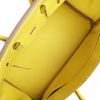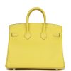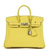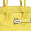 This Birkin is in Lime swift leather with palladium hardware and has tonal stitching, front flap, two straps with center toggle closure, clochette with lock and two keys and double rolled handles.