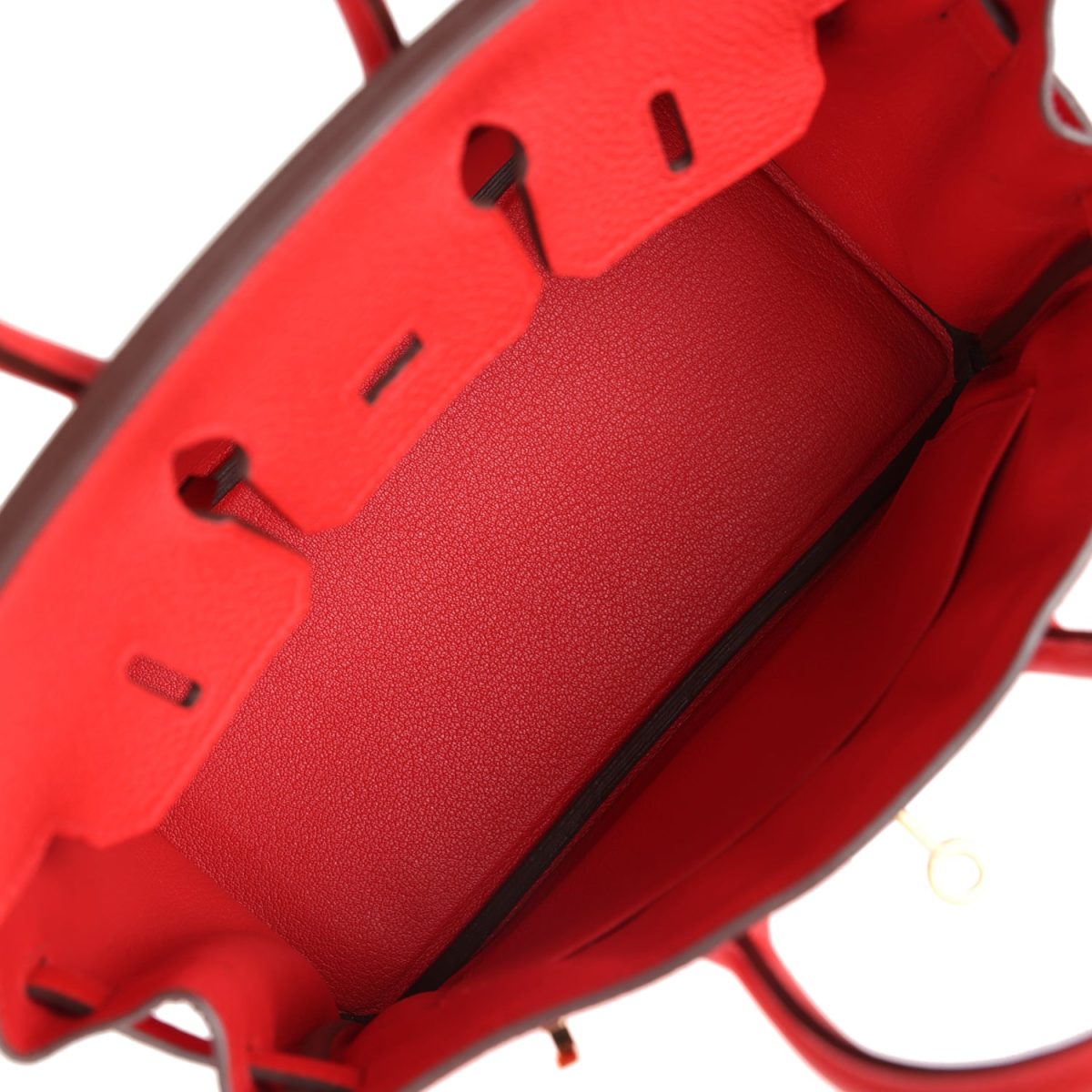 The interior is lined with Rouge De Coeur Chevre and has one zip pocket with an Hermès engraved zipper pull and an open pocket on the opposite side.