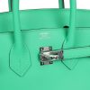 This Birkin is of Vert Comics swift with palladium hardware and features tonal stitching, front flap, two straps with center toggle closure, clochette with lock and two keys, and double rolled handles.