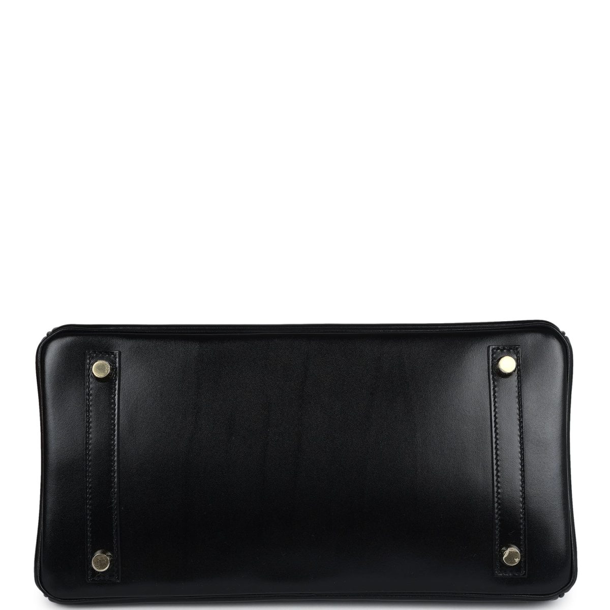 This Birkin is in Black boxcalf leather with gold hardware and has tonal stitching, front flap, two straps with center toggle closure, clochette with lock and two keys, and double rolled handles.