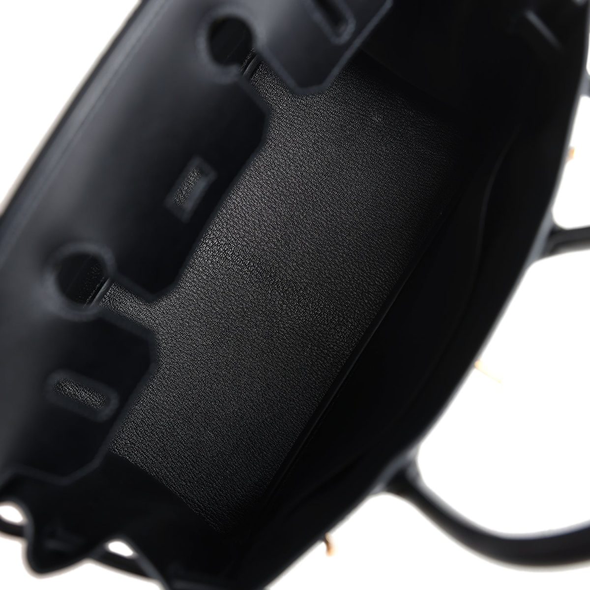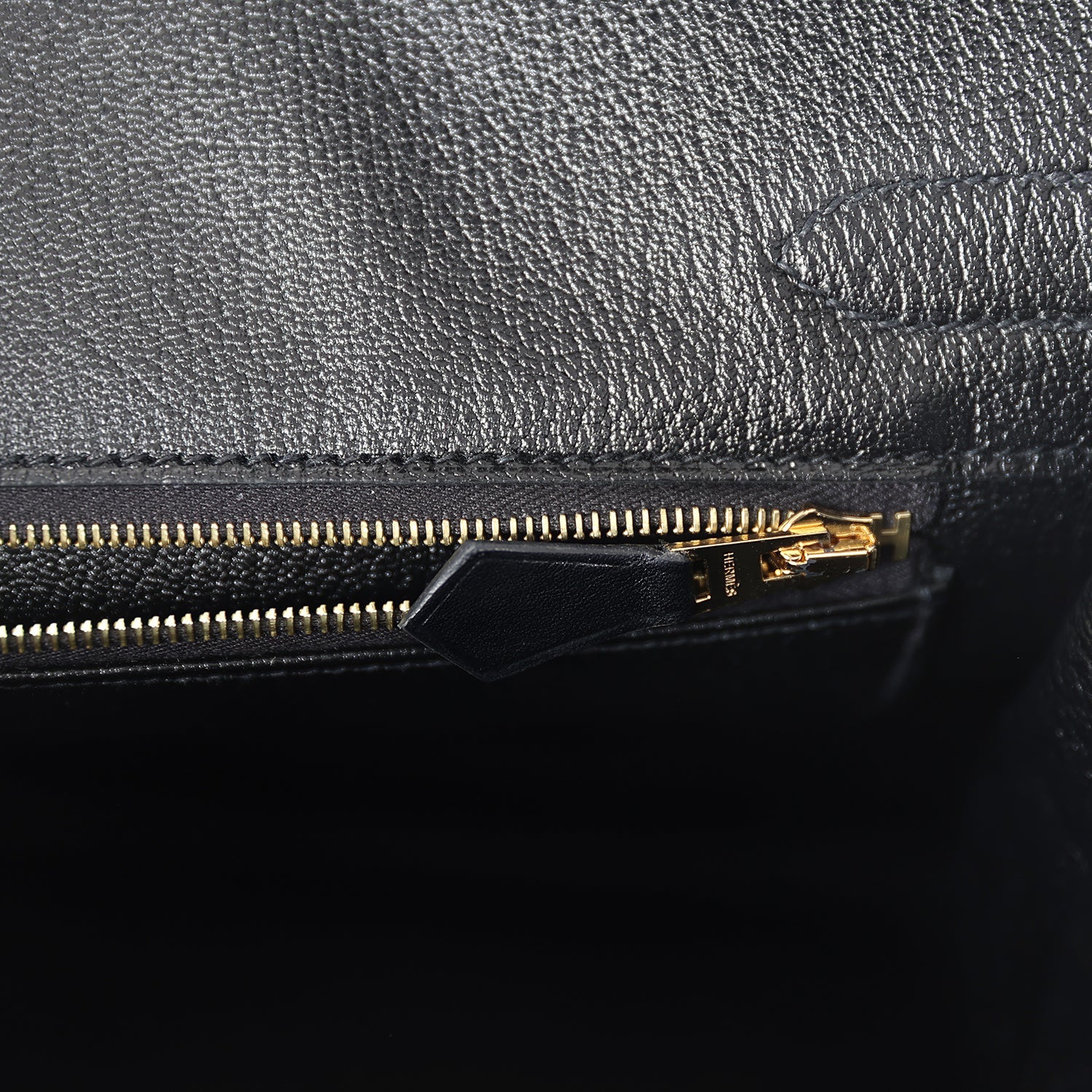 The interior is lined with Black chevre and has one zip pocket with an Hermès engraved zipper pull and an open pocket on the opposite side.