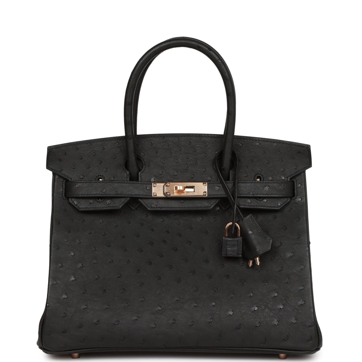 Hermès Birkin 30 Black Ostrich Rose Gold Hardware