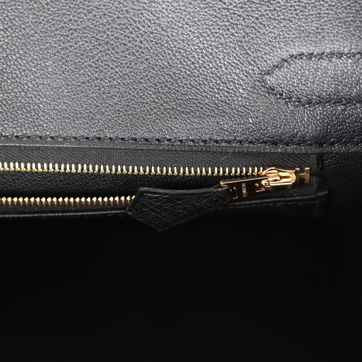 The interior is lined with black chevre and has a zip pocket with an Hermès engraved zipper pull and an open pocket on the opposite side.