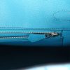 This Birkin is in Bleu Izmir shiny Niloticus crocodile with palladium hardware and has tonal stitching, front flap, two straps with center toggle closure, clochette with lock and two keys, and double rolled handles.