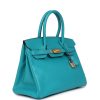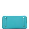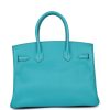The Interior is lined in Bleu Paon chevre and has a zip pocket with Hermès engraved pull and a pocket on opposite side.
