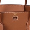 This Hermès Birkin 30 En Desordre is in Gold togo and swift leather with gold hardware, featuring contrast stitching, half diagonal front flap with toggle closure, clochette, lock, and two keys, a front pocket, a diagonal zip back exterior pocket, and double rolled handles.