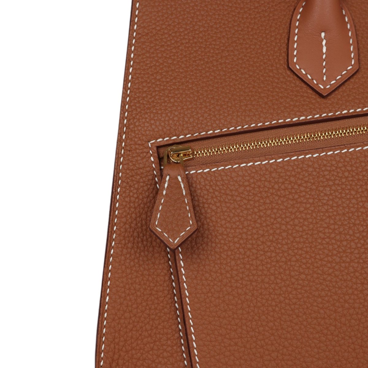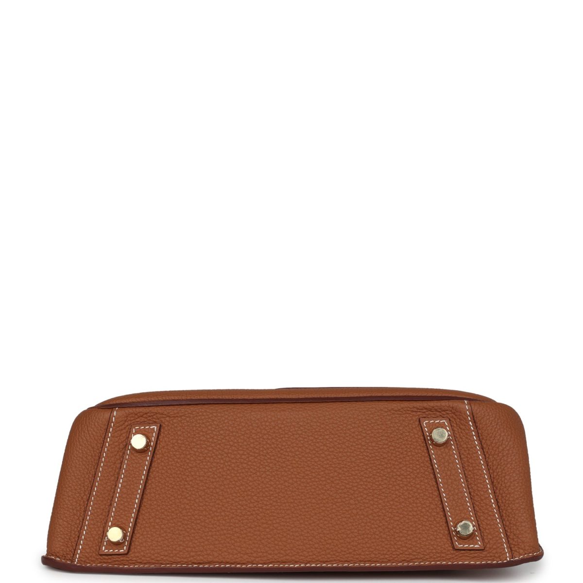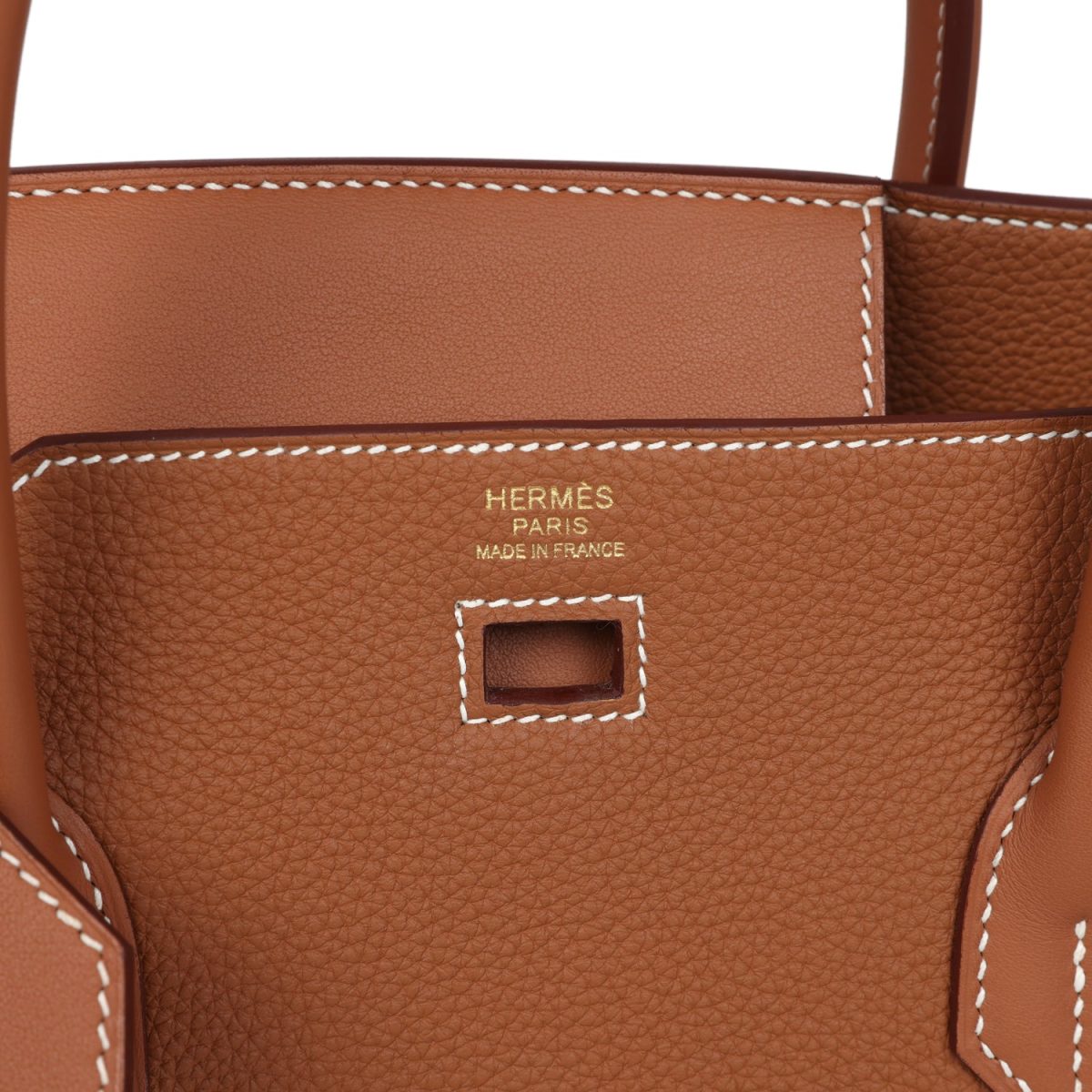 This Hermès Birkin 30 En Desordre is in Gold togo and swift leather with gold hardware, featuring contrast stitching, half diagonal front flap with toggle closure, clochette, lock, and two keys, a front pocket, a diagonal zip back exterior pocket, and double rolled handles.