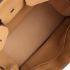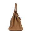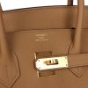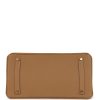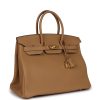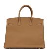 This Birkin is in Biscuit togo leather with gold hardware has tonal stitching, front flap, two straps with center toggle closure, clochette with lock and two keys, and double rolled handles.
