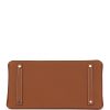 Measurements: 13.75" width x 11" height x 7" depth; 4.25" handle drop This Birkin is in Gold togo leather with gold hardware and has contrast stitching, two straps with front toggle closure, clochette with lock and two keys and double rolled handles. The interior is lined with Gold chevre and has one zip pocket with an Hermès engraved zipper pull and an open pocket on the opposite side.