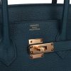 This Birkin is in Vert Rousseau togo leather with gold hardware and has tonal stitching, front flap, two straps with center toggle closure, clochette with lock and two keys, and double rolled handles.
