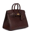 This Birkin is in Havane Matte Alligator Mississippiensis leather with gold hardware, tonal stitching, front flap with two straps, front toggle closure, clochette with lock and two keys, and two rolled handles.