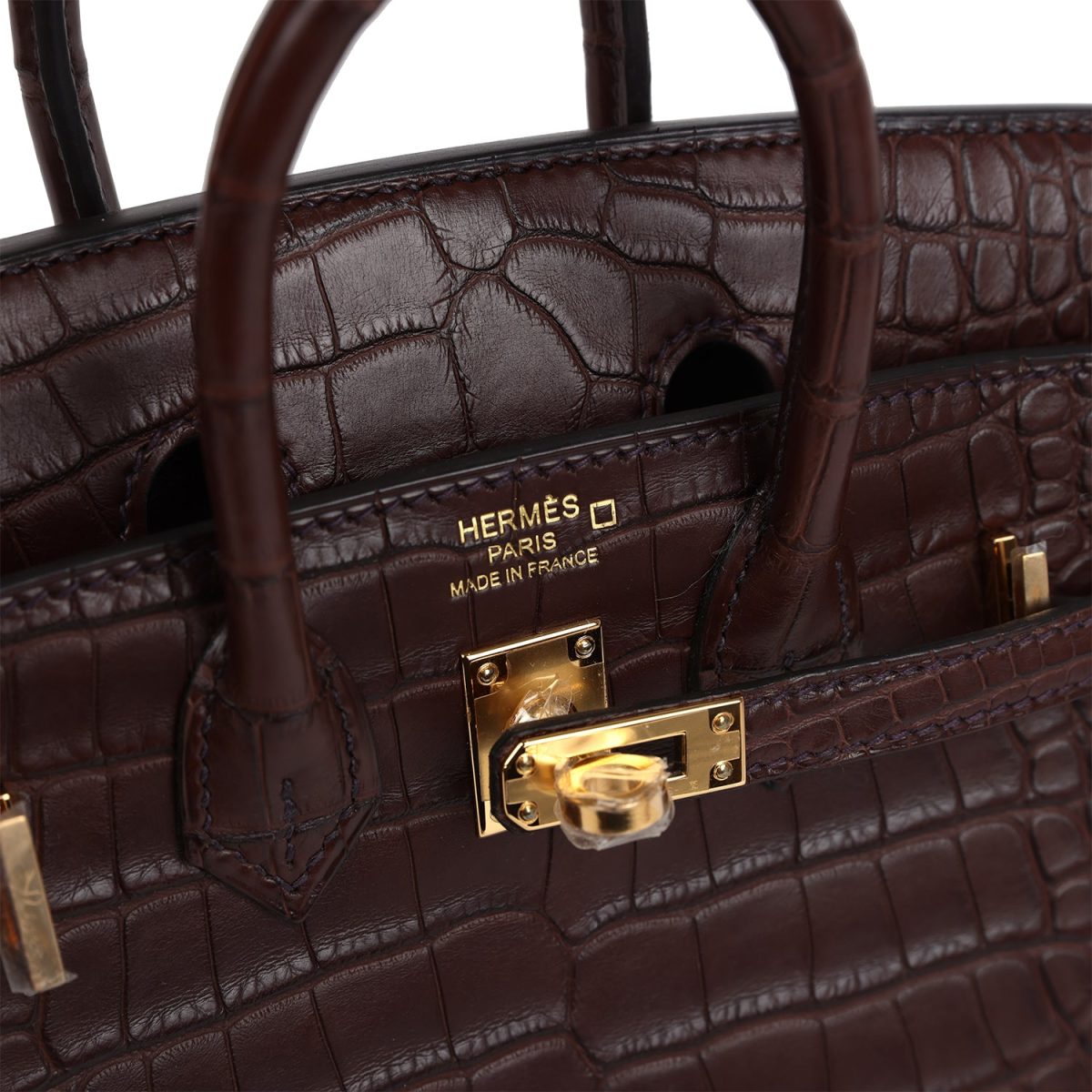 This Birkin is in Havane Matte Alligator Mississippiensis leather with gold hardware, tonal stitching, front flap with two straps, front toggle closure, clochette with lock and two keys, and two rolled handles.