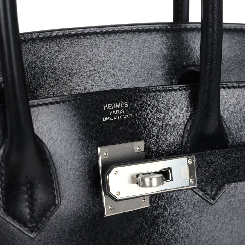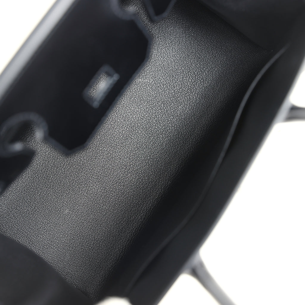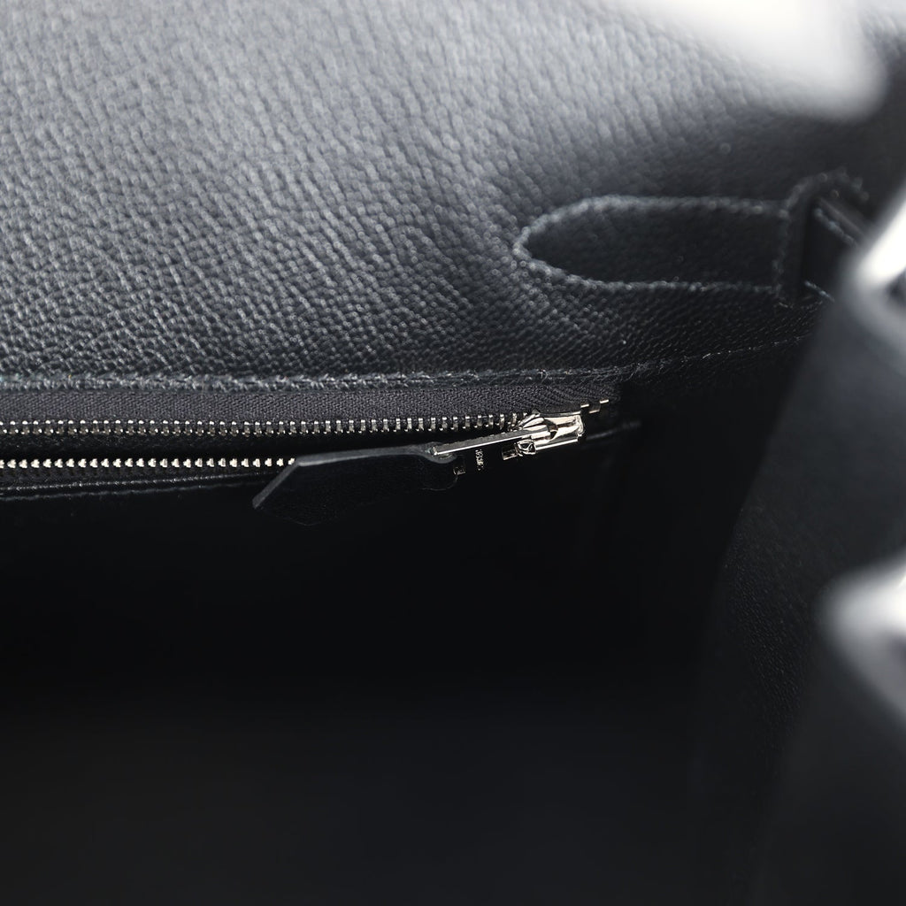 The interior is lined with Black chevre and has one zip pocket with an Hermès engraved zipper pull and an open pocket on the opposite side.