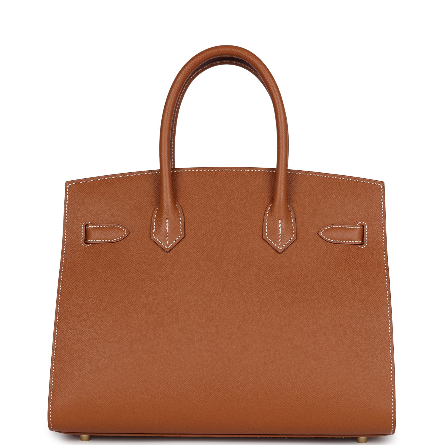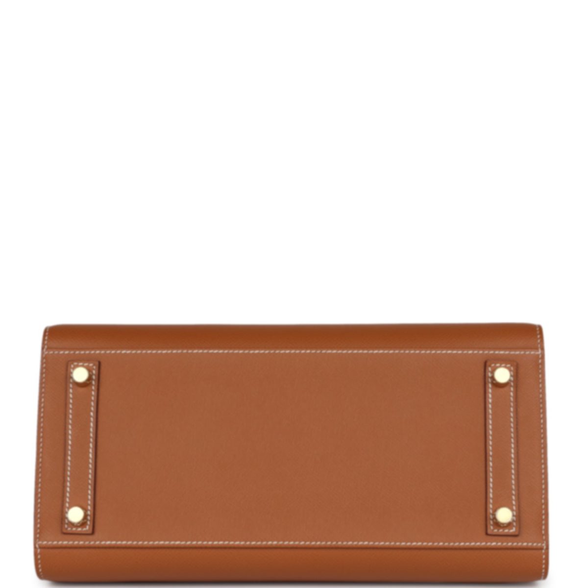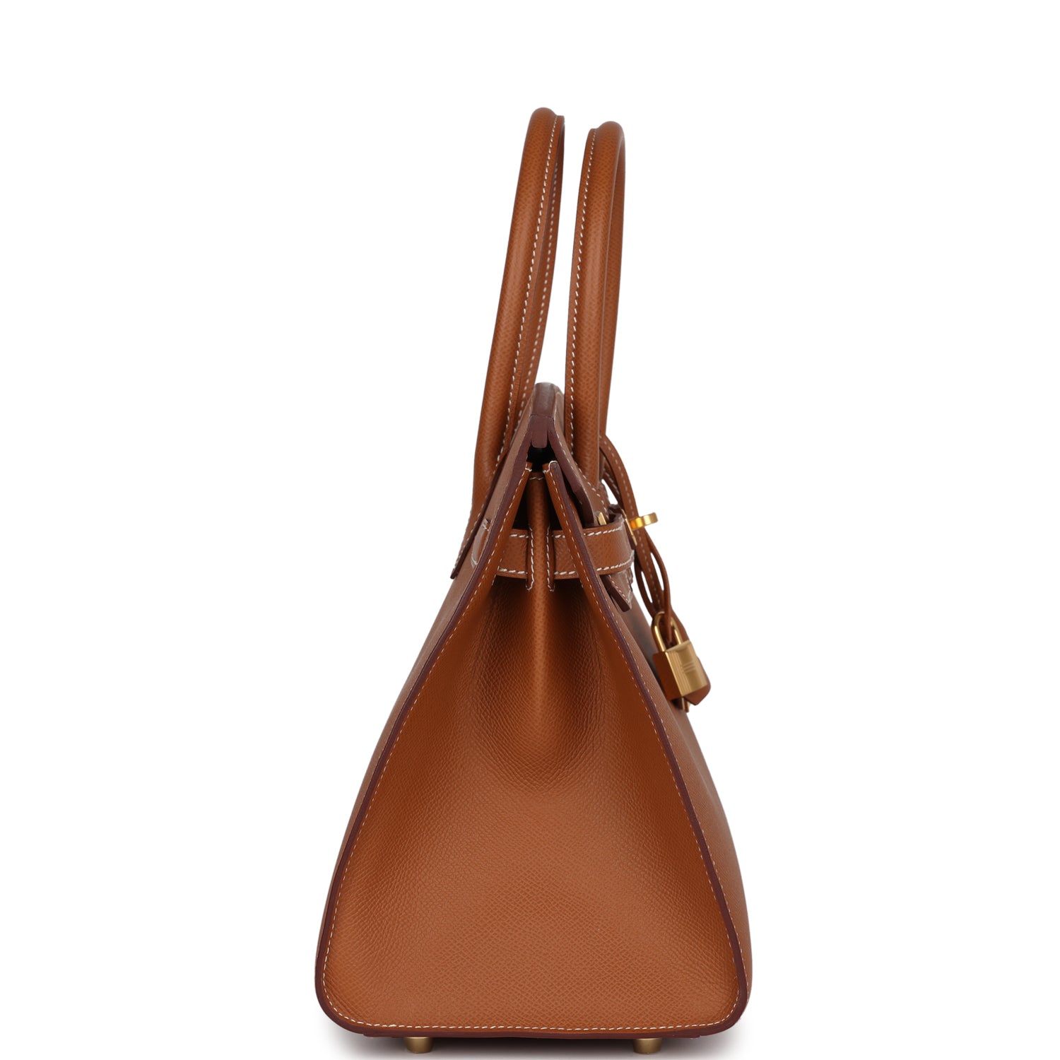 This Birkin is in Gold epsom leather with gold hardware and has contrast stitching, front flap, two straps with center toggle closure, clochette with lock and two keys, and double rolled handles.