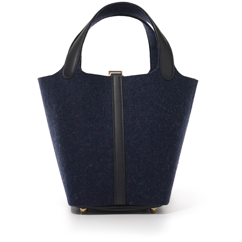 Hermès Bleu Nuit Feutre Wool and Black Swift Picotin Lock 18 Gold Hardware