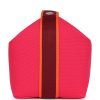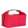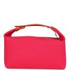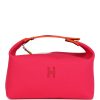 This Bride-A-Brac is in Hibiscus canvas with a woven strap and palladium hardware, features anti-stain waterproof lining, an embroidered “H” on the front, tonal stitching, zippered closure, snap closure top handle.