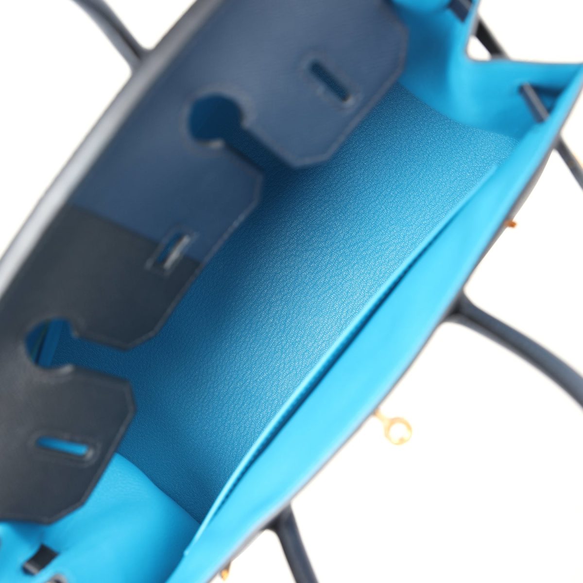 Hermès Casaque Birkin Sellier 30 Black, Bleu Indigo and Bleu Zanzibar Epsom Gold Hardware