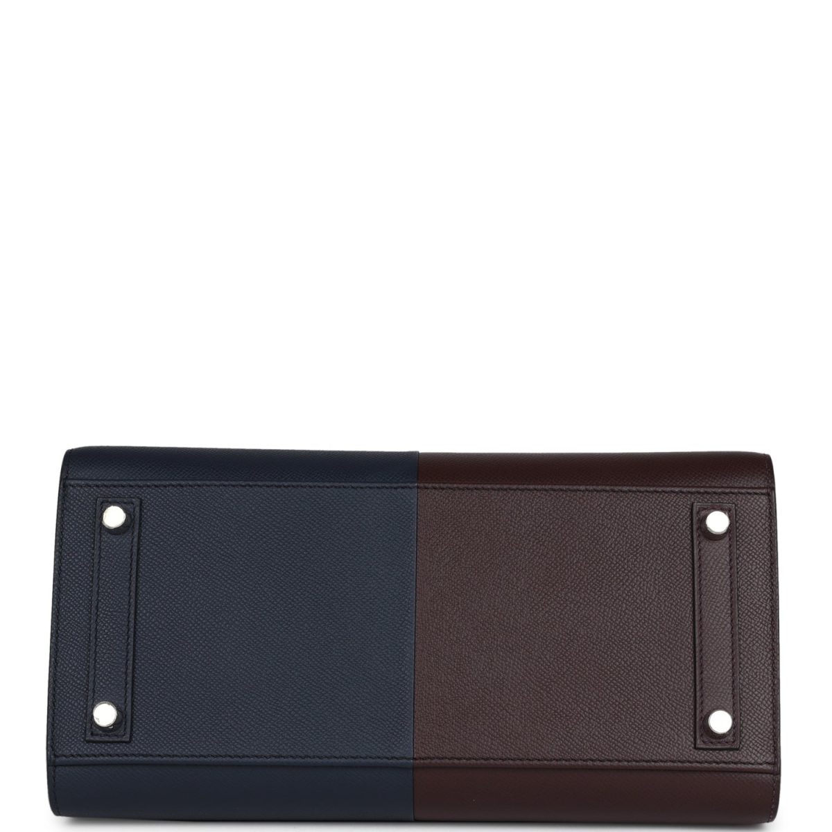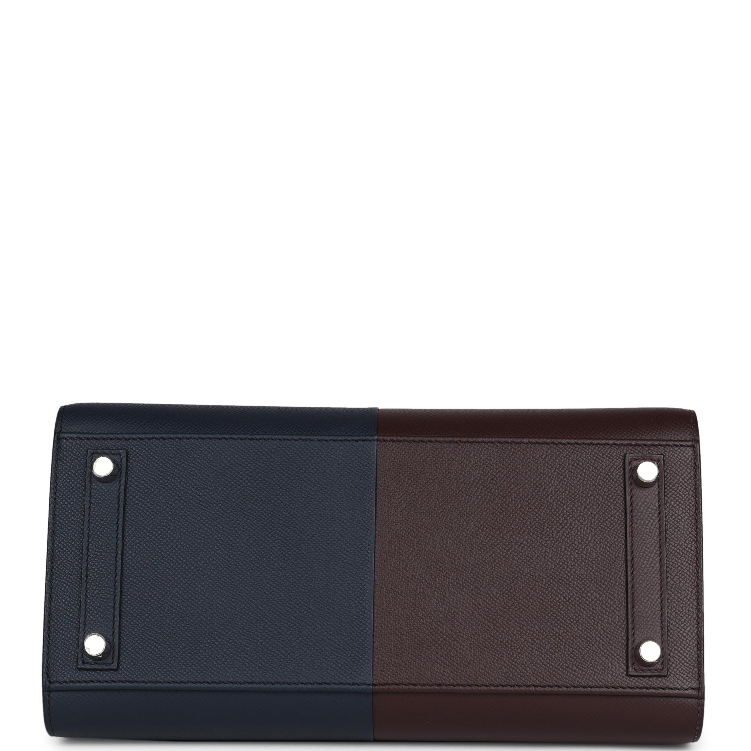 This Casaque Birkin is in Rouge Sellier and Bleu Indigo epsom leather with palladium hardware, tonal/contrast stitching, front flap with two straps, front toggle closure, clochette with lock and two keys, and double rolled handles.