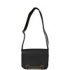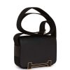 This Geta is in Black chevre leather with gold hardware and has tonal stitching, magnetic flap closure and adjustable shoulder strap.