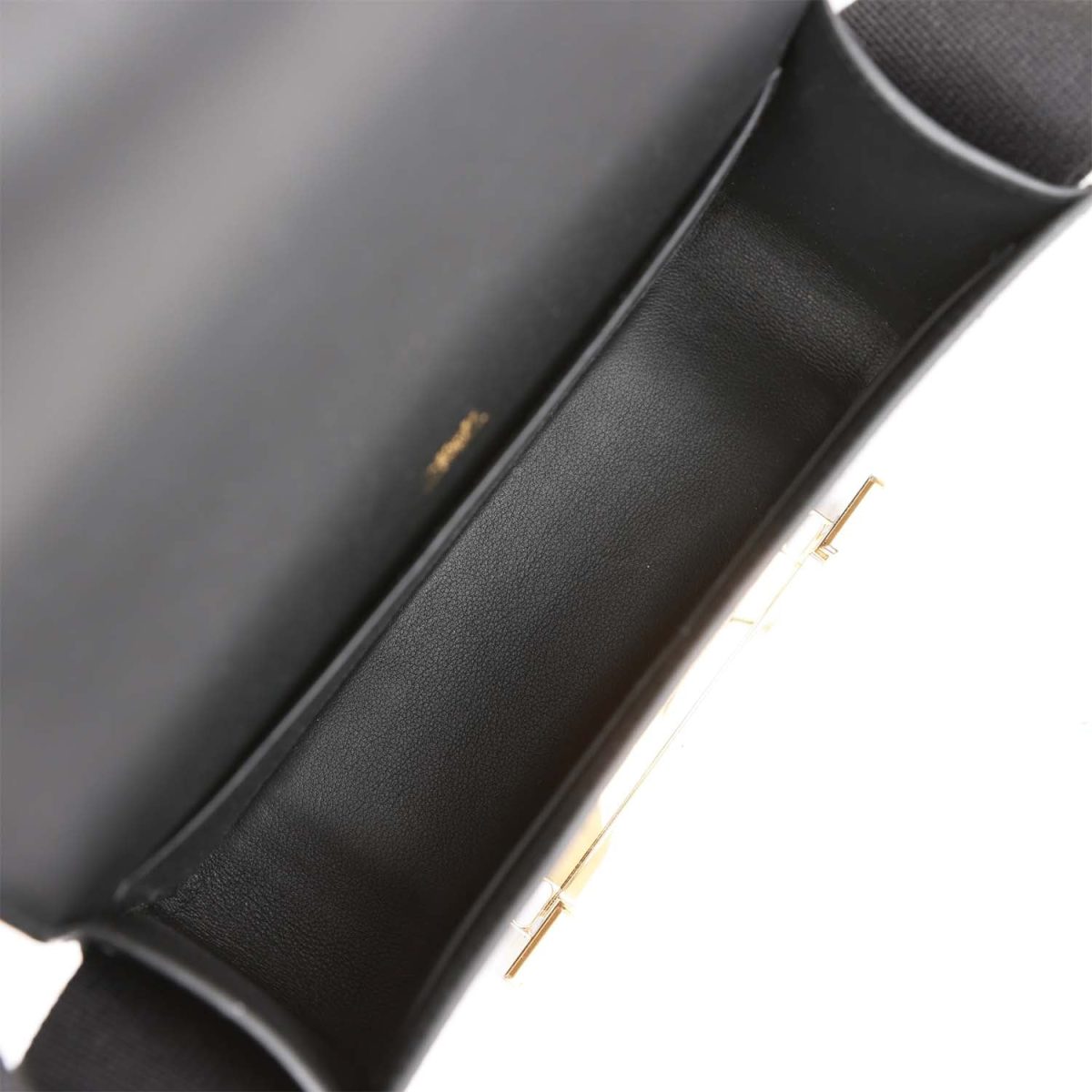This Geta is in Black chevre leather with gold hardware and has tonal stitching, magnetic flap closure and adjustable shoulder strap.