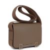 This Geta is in Etoupe chevre leather with palladium hardware and has tonal stitching, magnetic flap closure and adjustable shoulder strap.