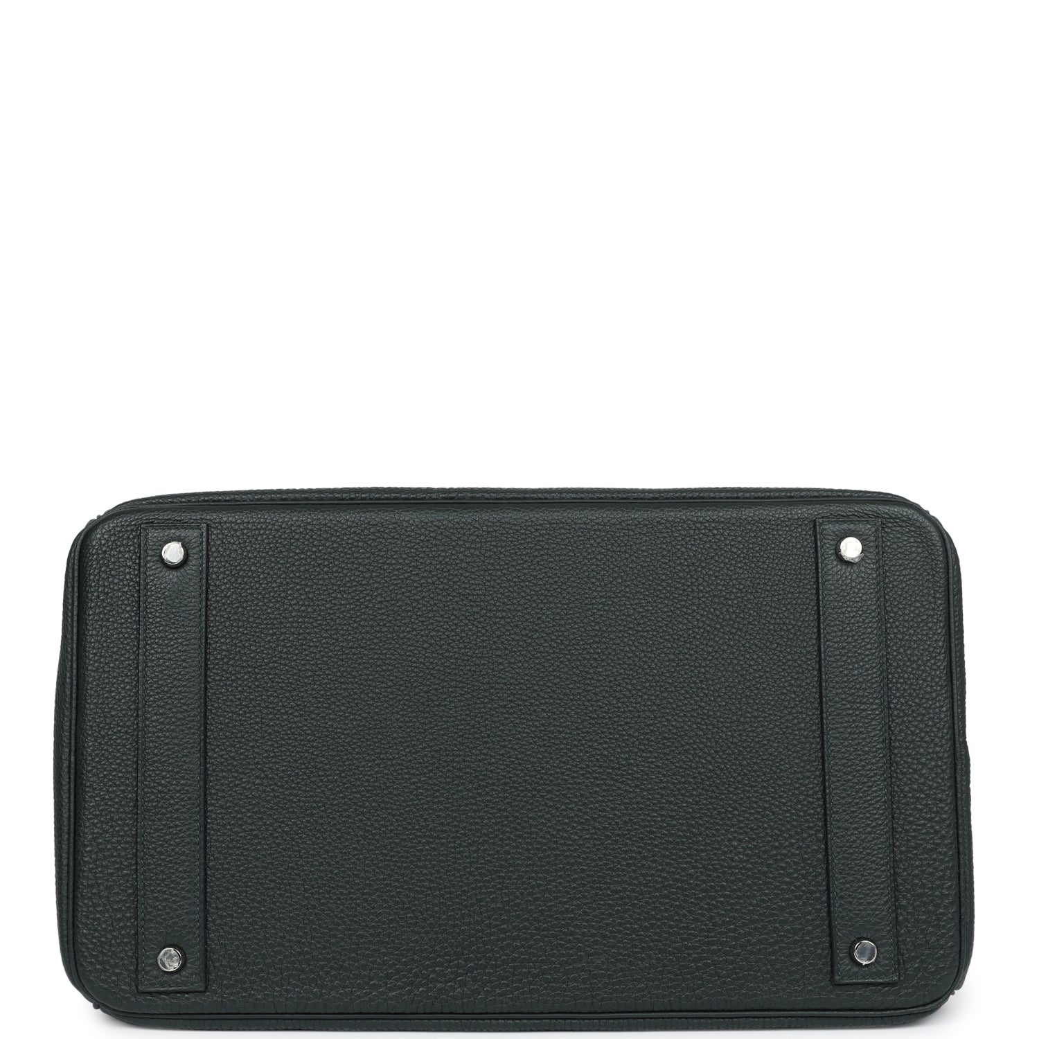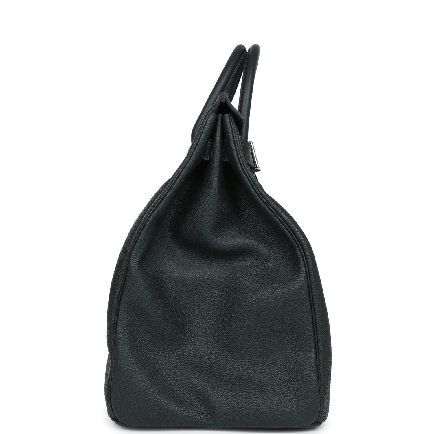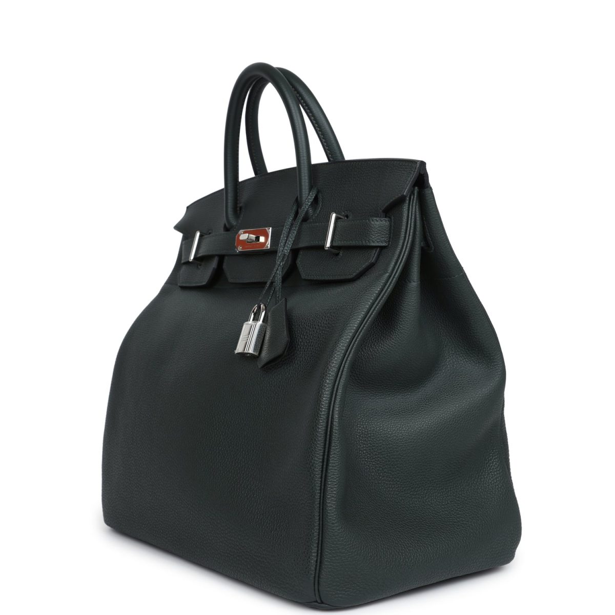 This HAC Birkin is in Vert Fonce togo leather with palladium hardware and has tonal stitching, two straps with HAC toggle closure, clochette with lock and two keys and double rolled handles.