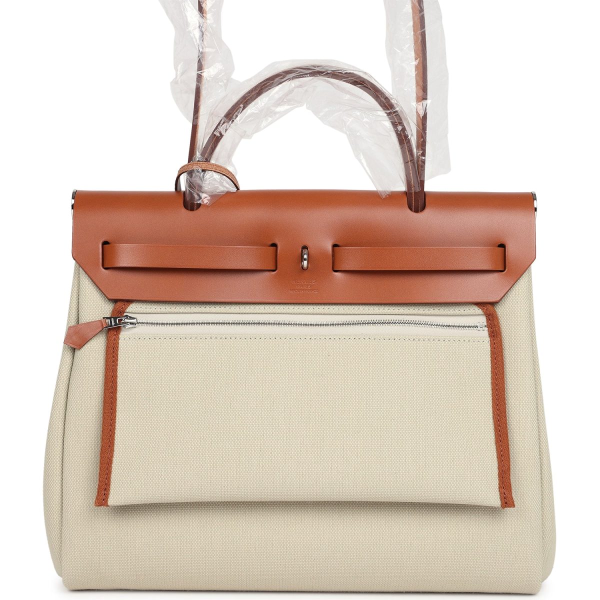 Hermès Herbag Zip PM 31 Beton Toile H & Fauve Vache Hunter Palladium Hardware
