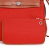 Measurements: 12.25" width x 9.75" height x 4" depth; 3" handle drop (18.25" shoulder strap drop) This Herbag Zip PM is of Capucine Toile H and Fauve Berline Hunter leather with palladium hardware and has tonal stitching, front flap, two straps with center clou de selle closure, clochette with lock and two keys, back zip pocket, single rolled handle and shoulder strap. The interior is lined with toile and has a removable zip pouch.