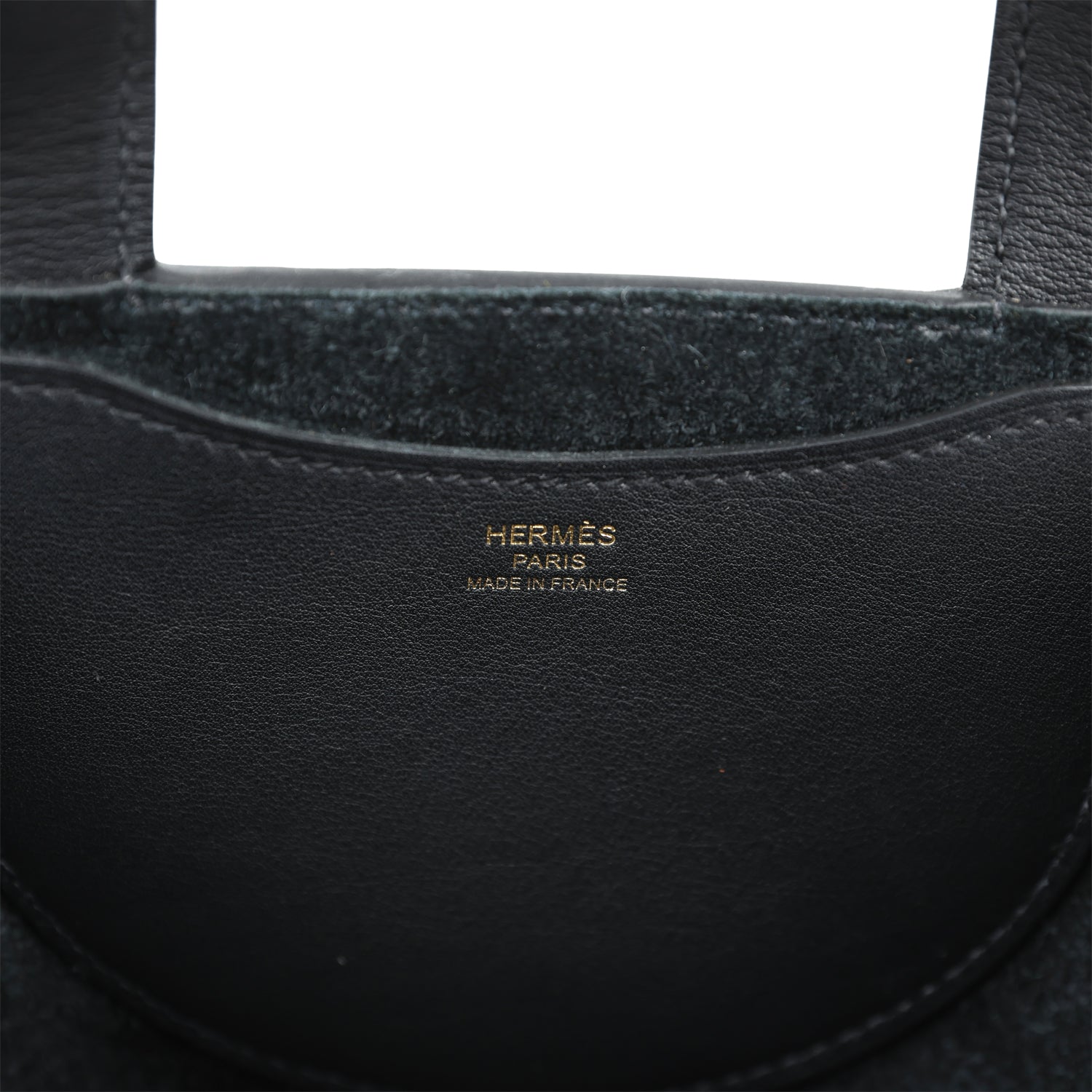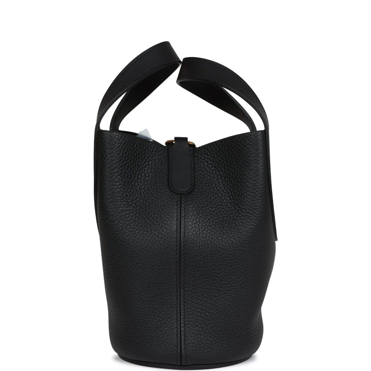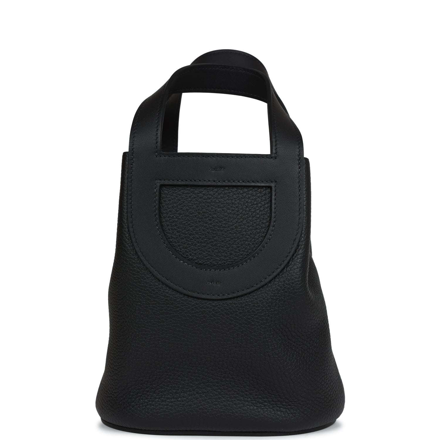 This In-The-Loop is in Black clemence and swift leather with Gold hardware and has tonal stitching with two top handles.