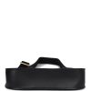 The interior is lined with Black lambskin and has one open pocket on the front wall.