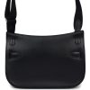 This Jypsiere mini is in Black evercolor leather with palladium hardware and has tonal stitching, a single flap, two pull straps, turnlock closure, and an adjustable wooly shoulder strap.
