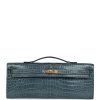 Hermès Kelly Cut Colvert Shiny Porosus Crocodile Gold Hardware