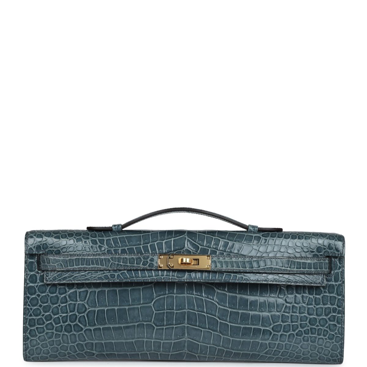 Hermès Kelly Cut Colvert Shiny Porosus Crocodile Gold Hardware