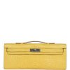 This Kelly Cut is in Mimosa matte alligator Mississppiensis with palladium hardware and has tonal stitching, two straps with front toggle closure and a top flat handle.