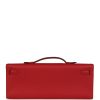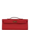 This Kelly Cut is in Rouge Casaque swift leather with gold hardware and has tonal stitching, two straps with front toggle closure and a top flat handle.