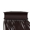 Measurements: 8.5" width x 6.5" height x 2.75" depth; 27" adjustable drop This limited edition Kelly Danse Anate is in Moka swift leather with gold hardware and has tonal stitching, long fringe detailing, two straps with front flap closure and an adjustable flat crossbody/backpack/belt strap. The interior is lined with Moka lambskin and has an open wall pocket.