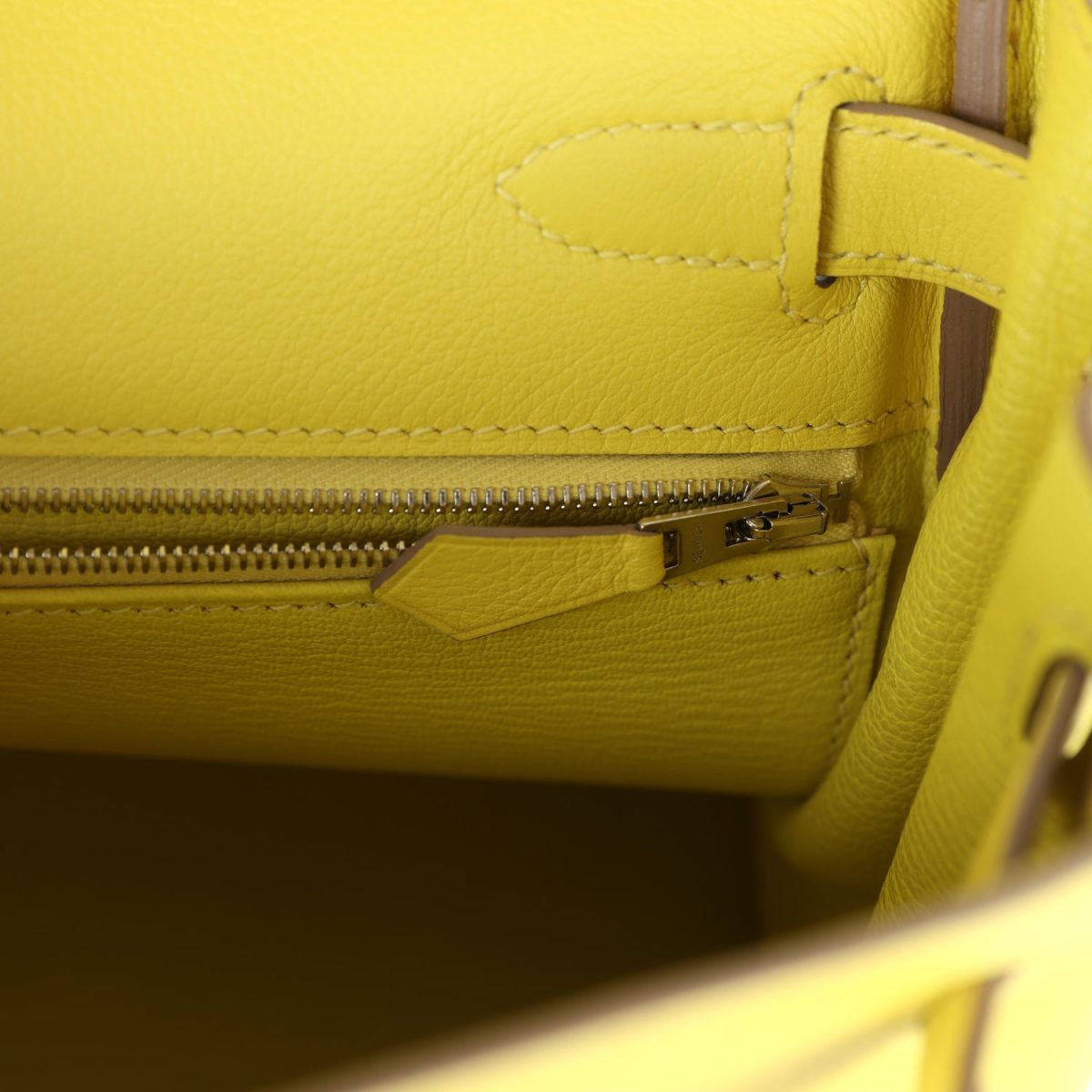 The interior is lined in Lime chevre and has one zip pocket with Hermès engraved pull and two open pockets on the opposite side.