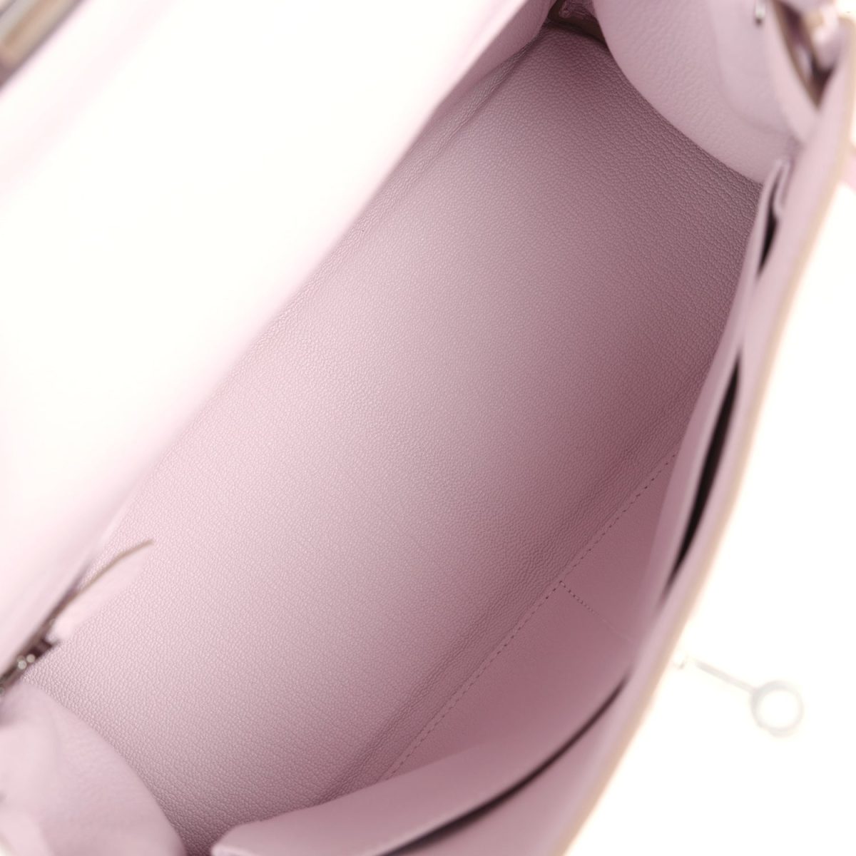 The interior is lined in Mauve Pale chevre and has one zip pocket with Hermès engraved pull and two open pockets on the opposite side.