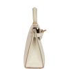 This tiny Kelly, in the Sellier style, is in Beton matte Mississippienis alligator with gold hardware and has tonal stitching, two front straps with front toggle closure, single rolled handle and removable shoulder strap.