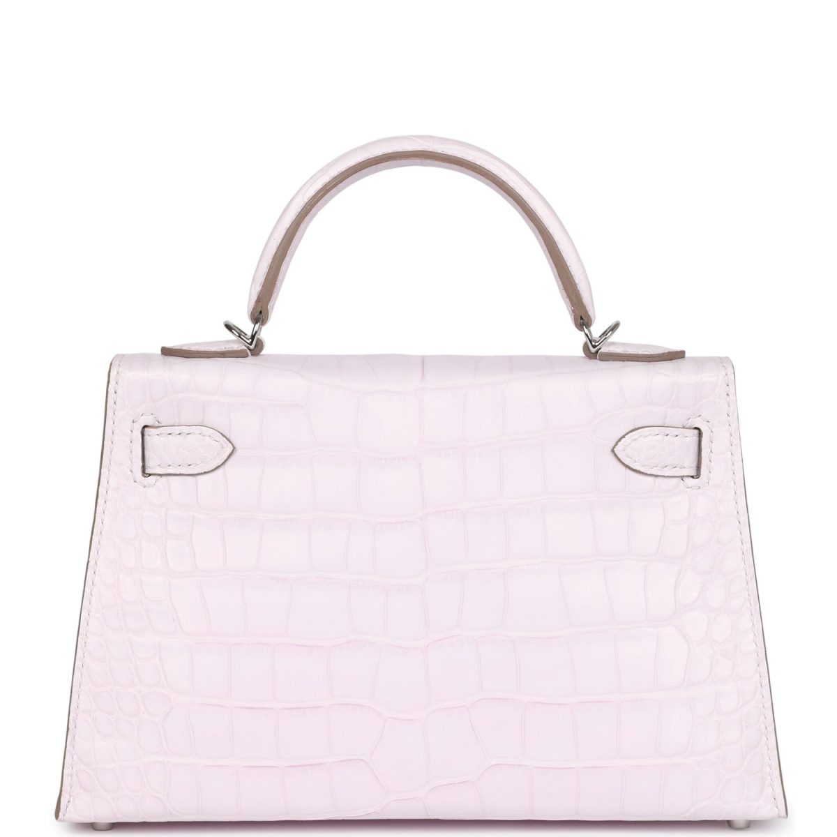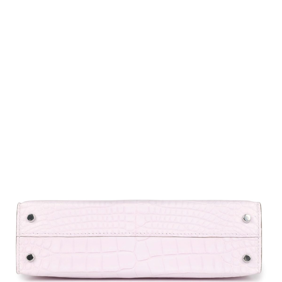 Hermès Kelly Sellier 20 Mauve Pale Boreal Satin Alligator Palladium Hardware