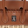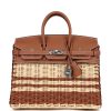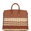 This rare Hermès Birkin 25 Picnic is in Gold swift leather and Naturel and Gold Osier stripe wicker with palladium plated hardware and has contrast stitching, front flap, two straps with toggle closure and double top handles.