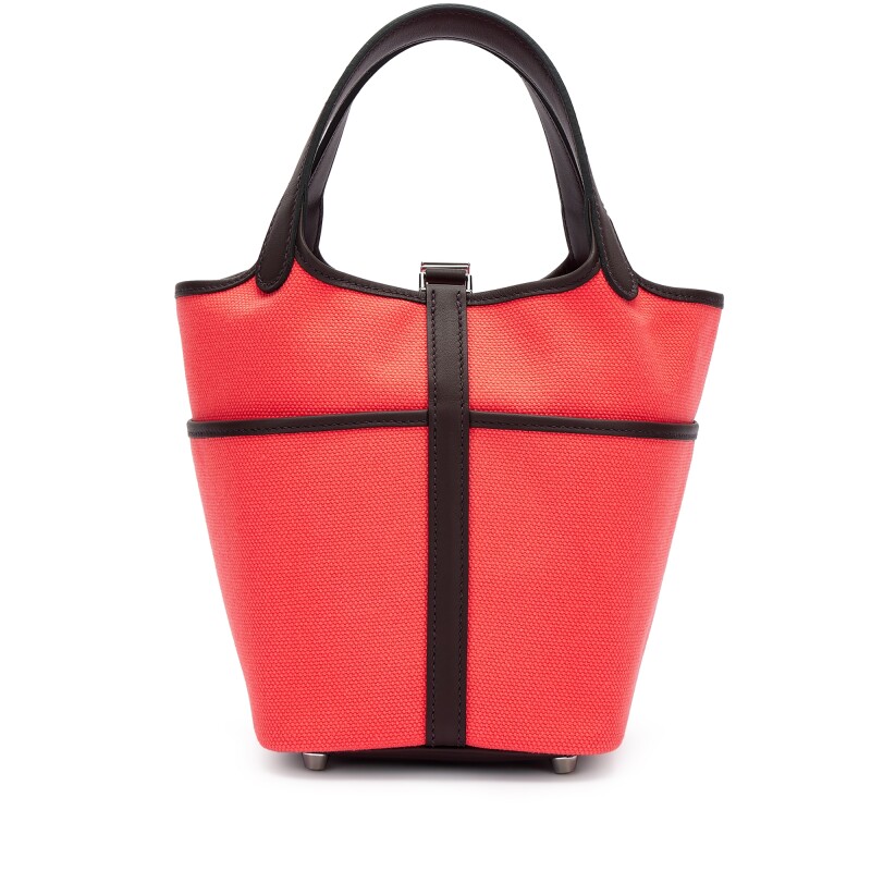 Be the first to review “Hermès Rouge Sellier Swift and Rose Texas Toile Goeland Cargo Picotin Lock 18 Palladium Hardware”