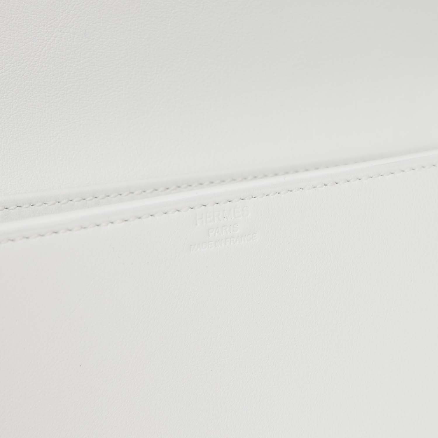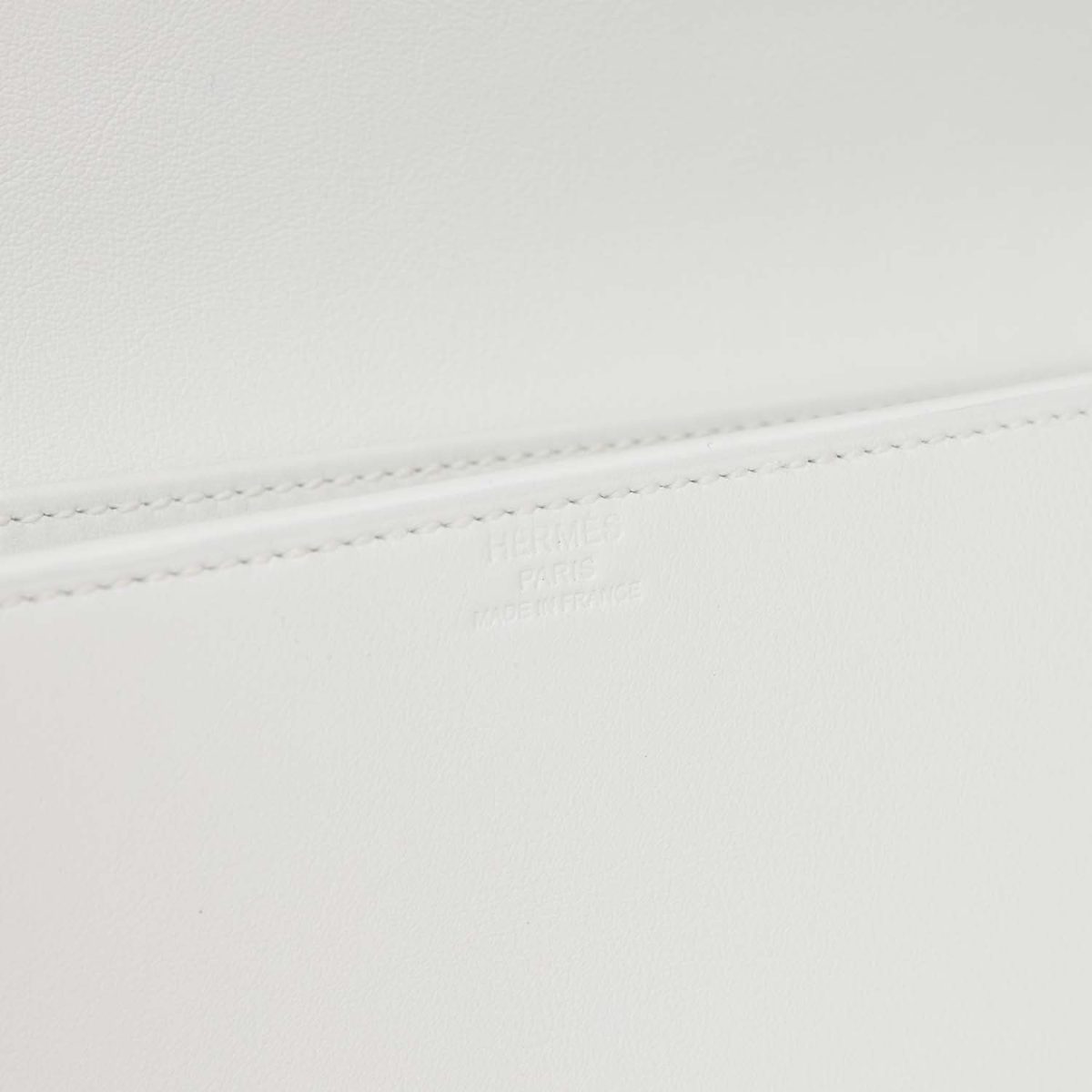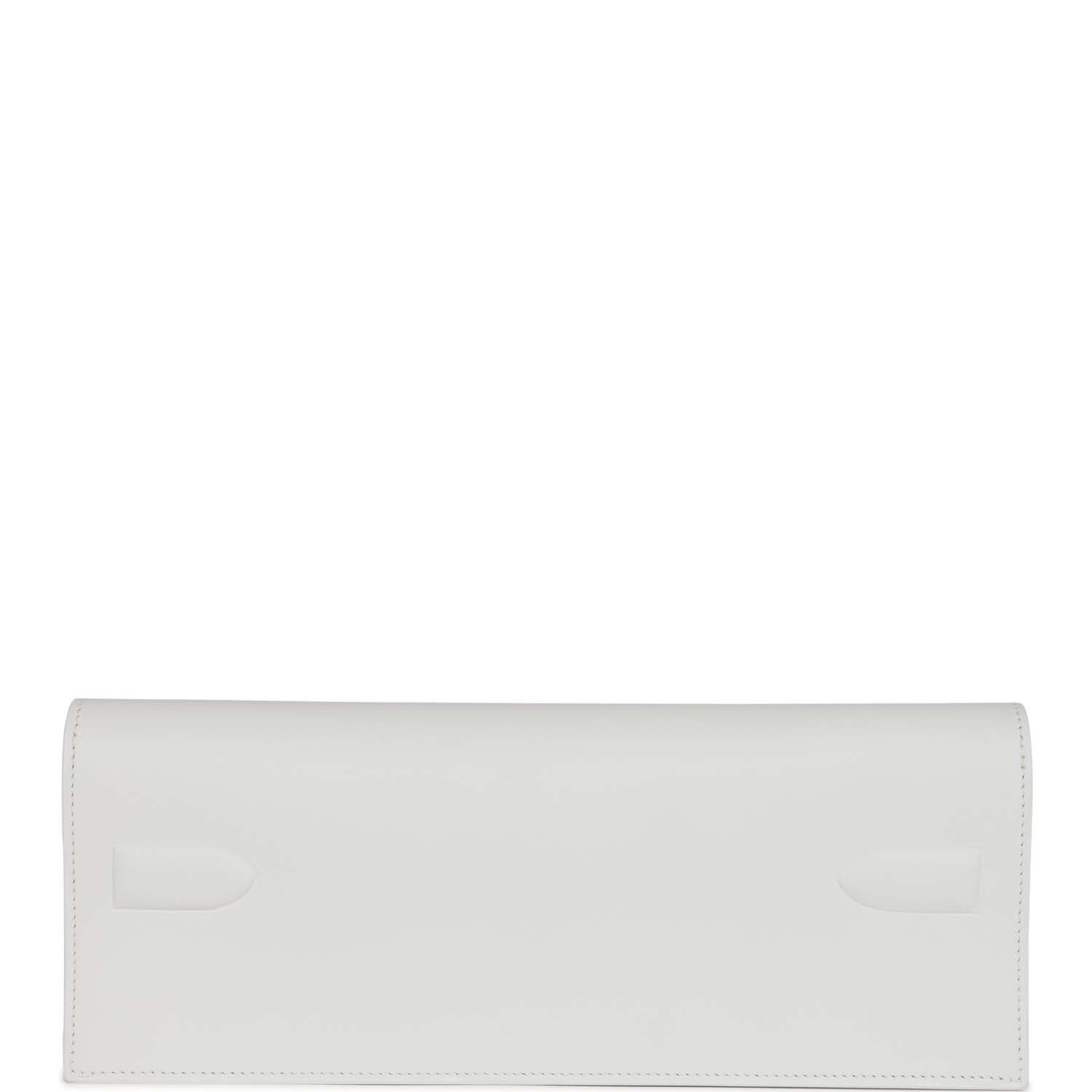 This Kelly Cut Shadow is in New White swift leather and has tonal stitching, embossed straps with embossed front toggle closure.