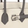 Measurements: 10" width x 7.5" height x 4.75" depth; 2.75" handle drop This Special Order Birkin is in Beton and Etain togo leather with brushed palladium hardware and has contrast stitching, front flap, two straps with center toggle closure, clochette with lock and two keys, and double rolled handles. The interior is lined with Etain chevre and has one zip pocket with an Hermès engraved zipper pull and an open pocket on the opposite side.
