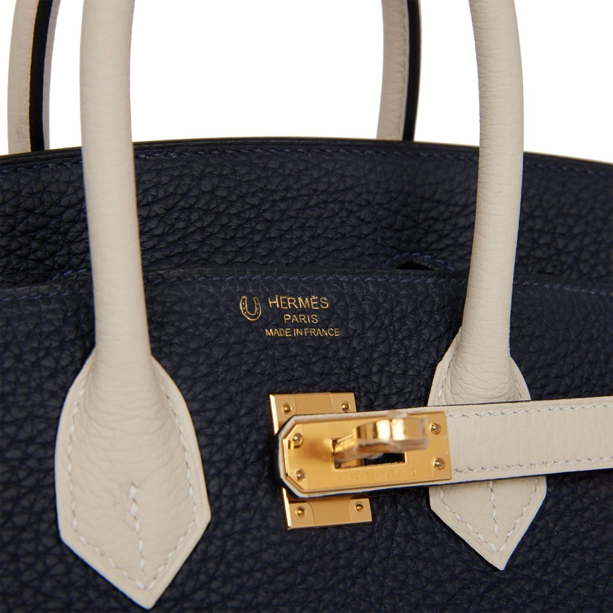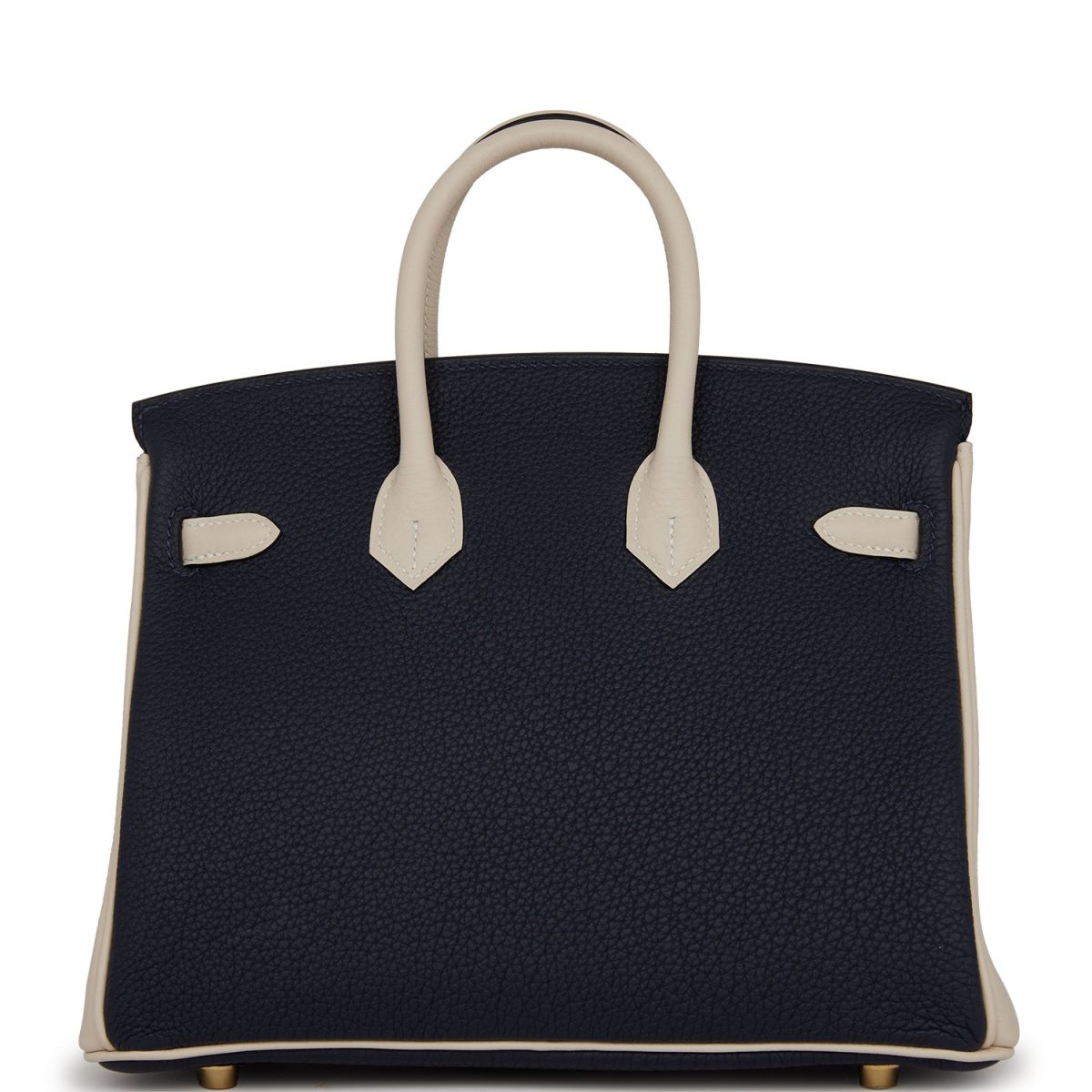 Hermès Special Order (HSS) Birkin 25 Bleu Nuit and Craie Togo Gold Hardware