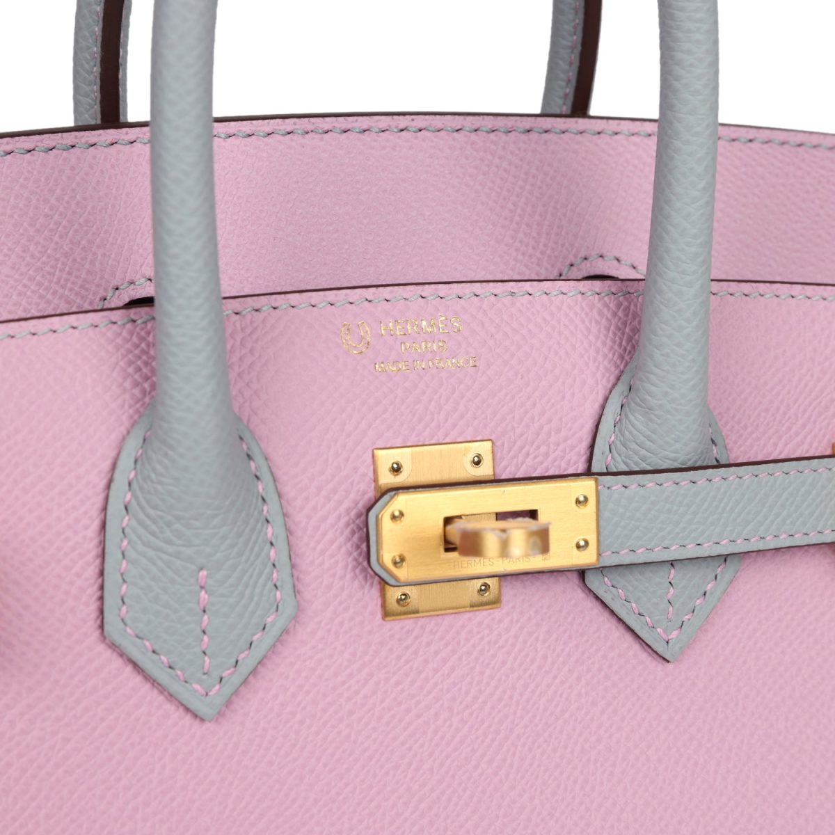 Hermès Special Order (HSS) Birkin 25 Mauve Sylvestre and Bleu Glacier Epsom Brushed Gold Hardware