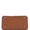 The interior is lined with Gold chevre and has one zip pocket with an Hermès engraved zipper pull and an open pocket on the opposite side.